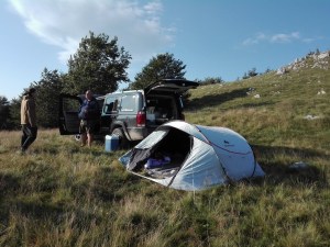 Z vrcholu Bjelašnice jsou úžasný výhledy, který se vám nesmazatelně vrejou do paměti! Nocovali jsme ,,na divoko“ asi 5 km pod vrcholem v nadmořské výšce 1588 m.n.m. A noční obloha……to máte pocit, že už jste ve vesmíru!