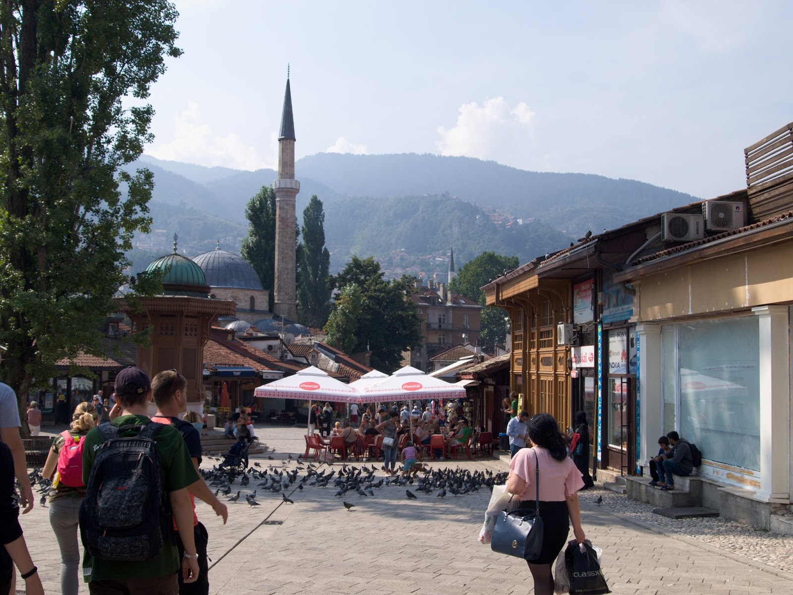 Prohlídka Sarajeva byla samozřejmostí! Do centra jsme se svezli tramvají, kde nás překvapil velký počet zahalených žen. Až později jsme se dozvěděli, že Sarajevo je z 80% muslimské. Ve městě jsme si prohlédli: Baščaršijské náměstí (Baščaršija) je centrální náměstí s Sebiljem, což je dřevěné kašna od českého architekta Alexandra Vítka a teče v ní pitná voda. Na náměstí je starý bazar z osmanských dob, který je hlavním turistickým lákadlem města, kde se nachází celá řada obchodů, řemeslných dílen, restaurací a kaváren.