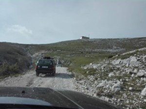 Na konec dne nás čekalo pohoří Bjelašnica se stejnojmenným nejvyšším vrcholem (2067m.n.m) a na ten jsme se vydali. Pohořím k vrcholu vede silnice, která je úřady schválená jako ,,oficiální“, ale jet po ní osobním autem je holý nesmysl. Je samé kamení! Pokud tedy nemáte nějaké offroad auto tak výjezd na vrchol nedoporučuji. I když místní se toho tady nebojí a svými starými Golfy a Audinami tyto ,,oficiální silnice“ plné kamení a štěrku normálně projíždí!