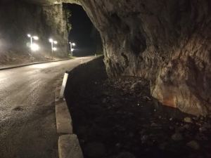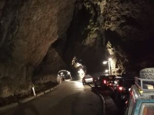 Ve Vareši jsme se chtěli podívat na opuštěné nádraží a doly. Ale vzhledem k tomu, že jsme sem dorazili za tmy, zklamaně jsme museli uznat, že prohlídka nepřichází v úvahu. Náplastí nám byla jiná podívaná. Na silnici R444 kousek před Vareší jeskyně, kterou procházela silnice. Tunel Ponikve. Sotva jsme do něj vjeli už se ve vysílačkách ozývalo: ,,vidíte tu krásu? Otáčíme!“ Takže jsme dojeli na konec tunelu, tam se otočili a dali si to ještě jednou. A i když v tunelu nebylo moc místa k zastavení, zastavit jsme prostě museli! Foťáky v mobilu sice nechtěli moc pobrat osvětlení, ale přesto všichni fotili jak vzteklý! 🙂