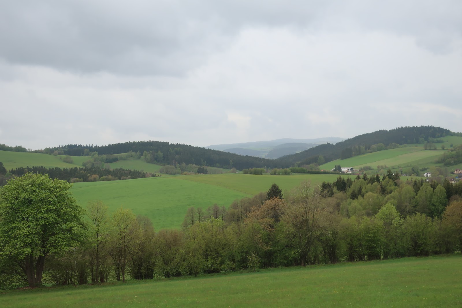Krajina je ve všech námi navštívených místech nádherná! Silničky se klikatí, stoupají a klesají (někde až dost) mezi krásnými lesy a loukami, o kterých jsem si myslela, že už neexistují.