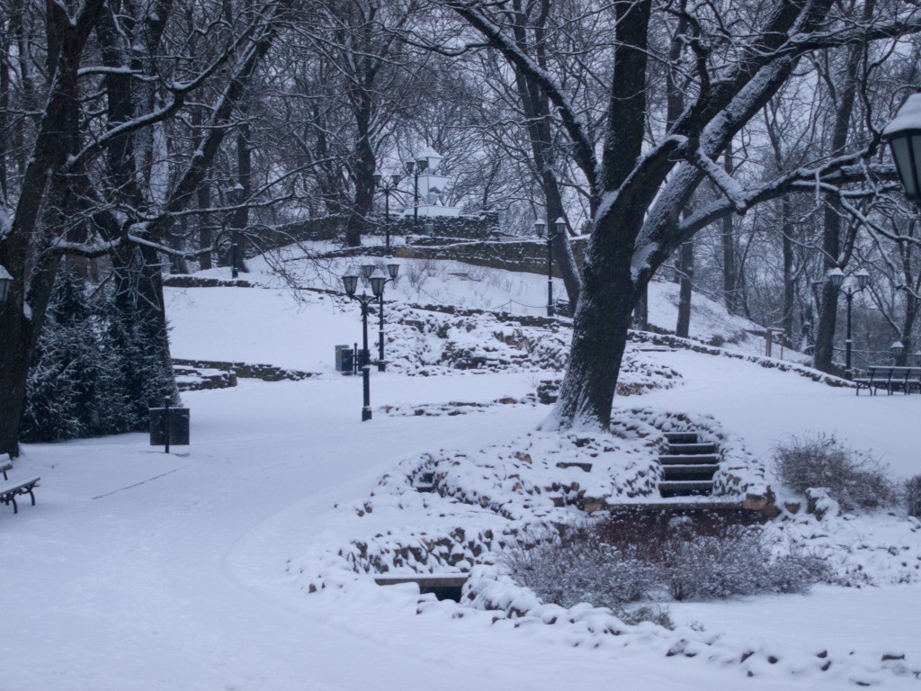 Další zastávka městský park. Byl celý pod sněhem a vypadal velmi romanticky.