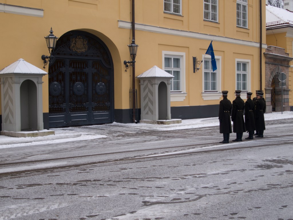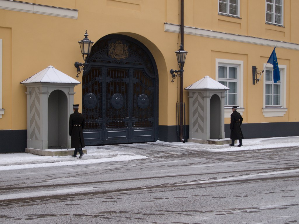 Byli jsme také svědky střídání stráží u Rižského zámku, který dnes slouží jako sídlo prezidenta.