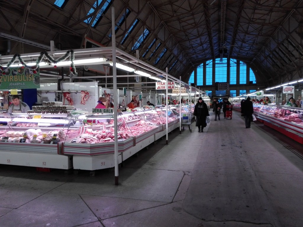 Přes noc opět nasněžilo, takže při dopolední procházce centrem Rigy jsme se brodili ve spoustě sněhu. Naše první kroky vedli do obří tržnice. (Rigas Centraltirgus) Pět pavilonů, někdejších hangárů, které kdysi sloužili pro montáž, výrobu a ustájení vzducholodí Zeppelin se přeměnili v úžasnou tržnici. Každý pavilon je určen pro jiný typ zboží. Tohle byla pastva pro všechny smysly. Kdybychom měli víc času jistě bychom tu dokázali strávit celý den a ochutnávali a ochutnávali a ……..