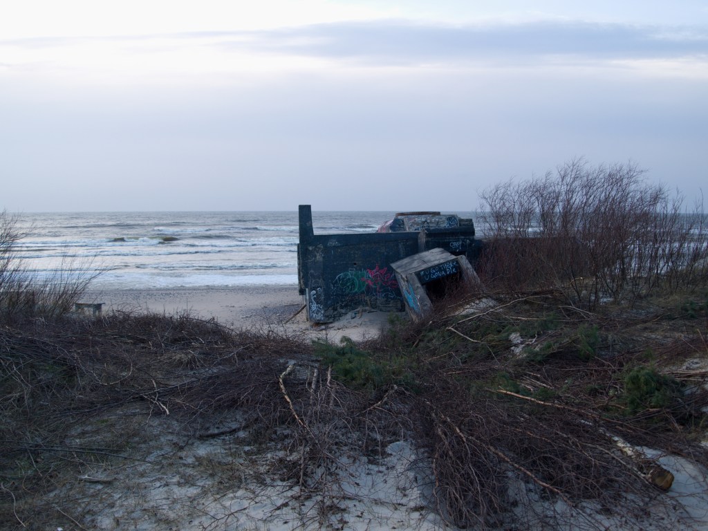 Nepřetržitá pláž vede od Klaipedy vzdálené asi 25 km až k hranicím Lotyšska. Což bylo pro kluky jak červený hadr. 🙂 Chtěli si zařádit Jeepy v písku! Ale bohužel tam, kde jsme se pohybovali nebyla možnost na pláž vjet auty. K bunkrům, které se ukrývají na pláži jsme tedy museli dojít pěšky. Pro mě jedině dobře……pláž totiž byla plná nádherných kamenů. 🙂 Jak jistě tušíte, měla jsem jich na zpáteční cestě plnou kabelu.