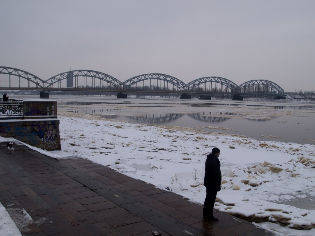 Cestu k autům jsme si zkrátili po nábřeží podél místy zamrzlé řeky Daugavy.