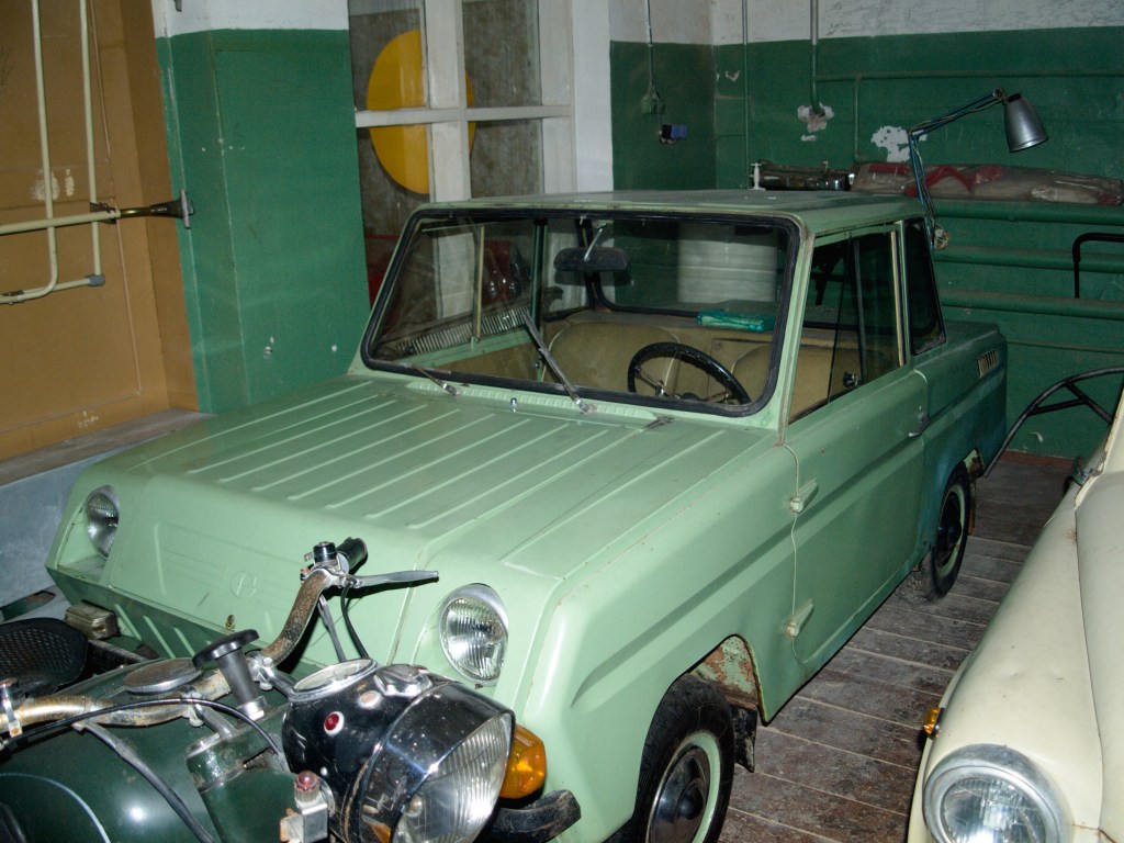 Měli jsme ještě namířeno do soukromého muzea starých aut, který Honza objevil v nějakém zámeckém prospektu. Muzeum se mělo ukrývat v prodejně a opravně aut…..a taky jo. Paní prodavačka v prodejně na nás sice koukala jak ,,z jara” , ale nakonec se nás ujal majitel a celou svou sbírkou nás provedl. Měli jsme to i s výkladem……v angličtině……a Honza překládal.