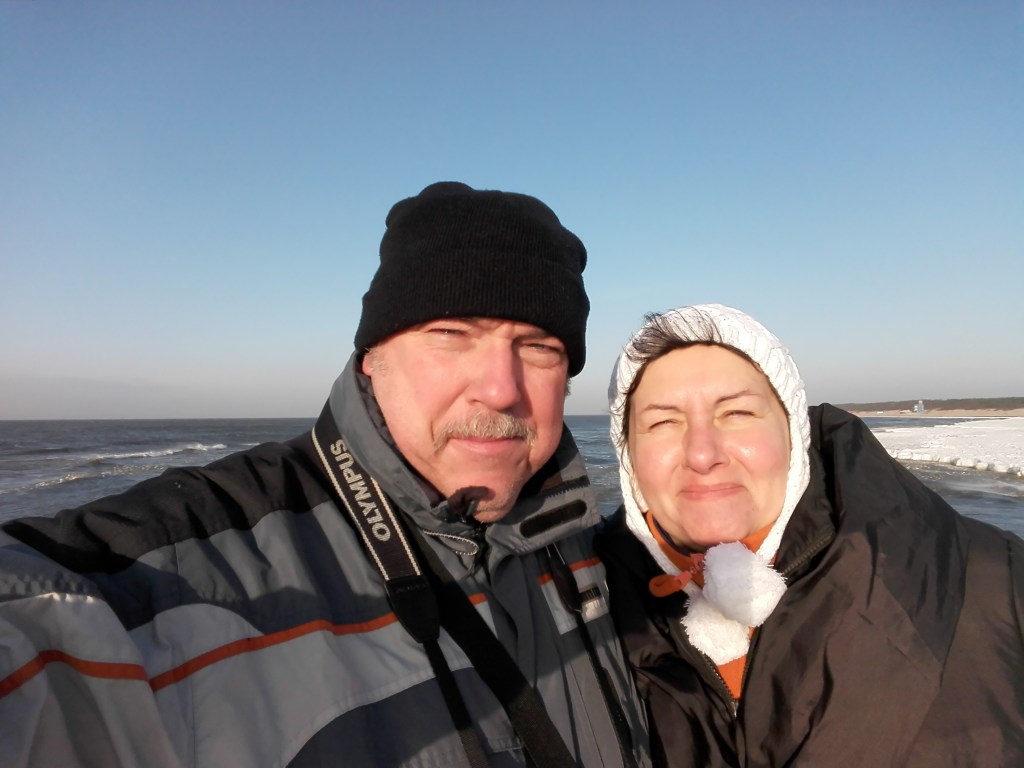 Bylo sice jen asi -6 stupňů , ale foukal silný vítr, který pocit zimy ještě zvětšoval. Nevím jak vy, ale já viděla moře vždycky jen v létě. Mělo nádhernou modrou barvu a vál tu příjemný větřík. Takže pohled na zimní moře nám doslova vyrazila dech.