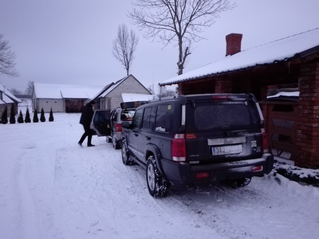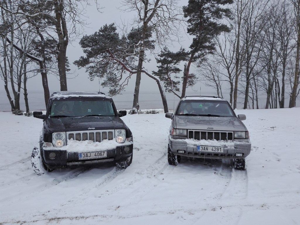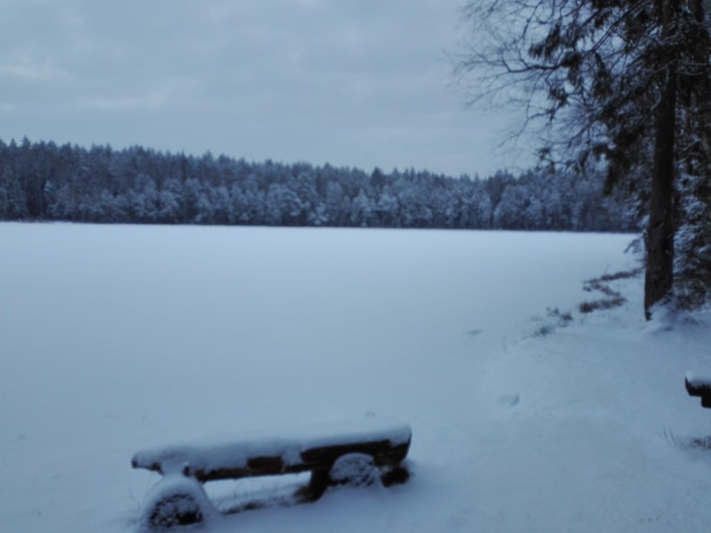 Při večerním plánování další trasy, Honza zjistil, že nedaleko zámku je jezero,takže naše první zastávka směřovala k jezeru Lejas.(Lejas ezers) Cesta k němu vedla nádherným lesem, který byl celý schovaný pod sněhovou peřinou. Kola aut se bořila do čerstvého sněhu, kde ještě nikdo nejel. Zasněžené místo u jezera byla velká romantika.