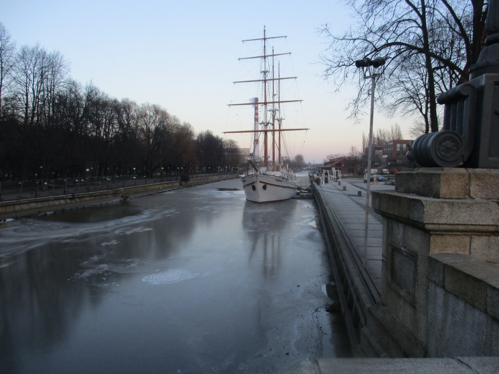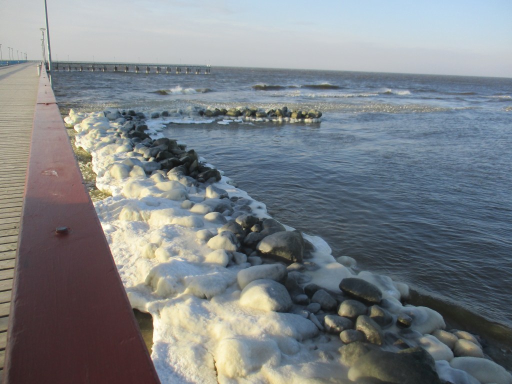 Do přístavu jsme došli až za tmy, což nás mrzelo. Ale i tak jsme viděli věci nevídané. Třeba zamrzlé moře. Loď rozrážející svým trupem led. Nebo podívaná na Kurskou kosu. Což je písečný poloostrov, dlouhý 98,4 km. Jižní část patří Rusku a severní Litvě. A také ještě větší vítr a zimu.