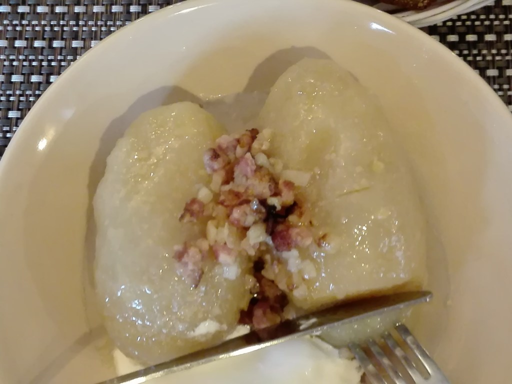 Ještě v Litvě jsme si dali trochu pozdní oběd………..zase jsme zkusili jejich národní jídlo Cepelinai a tentokrát bylo výborný.