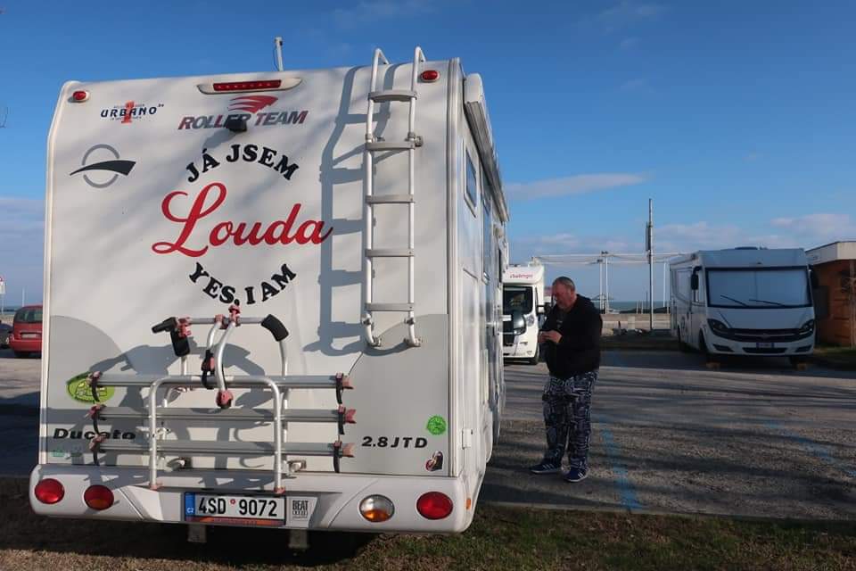 Zdeněk našel velké parkoviště pro karavany a tam jsme našeho Loudu zanechali.